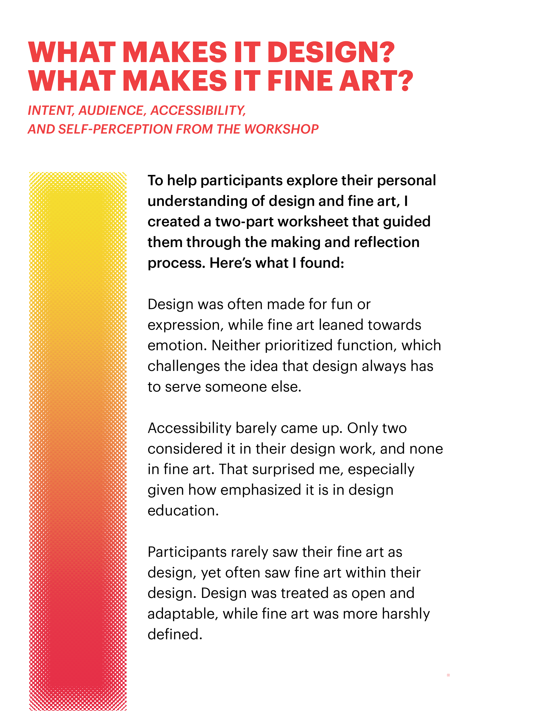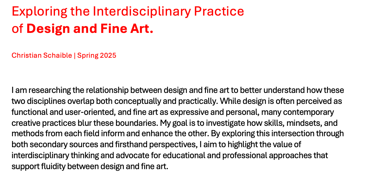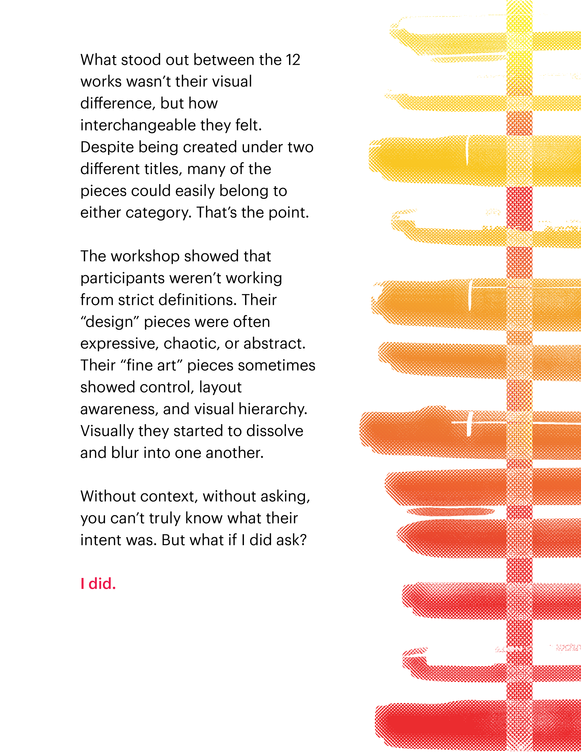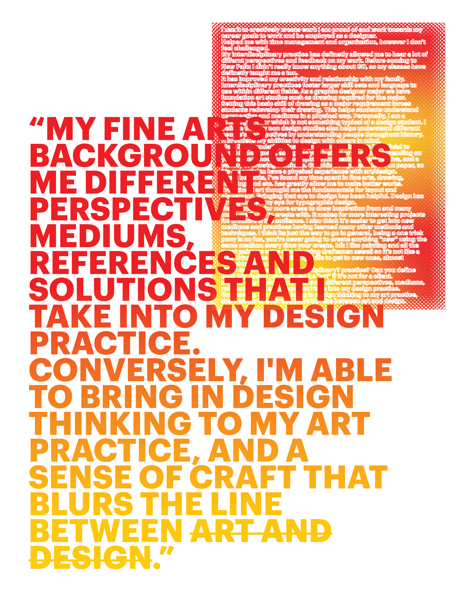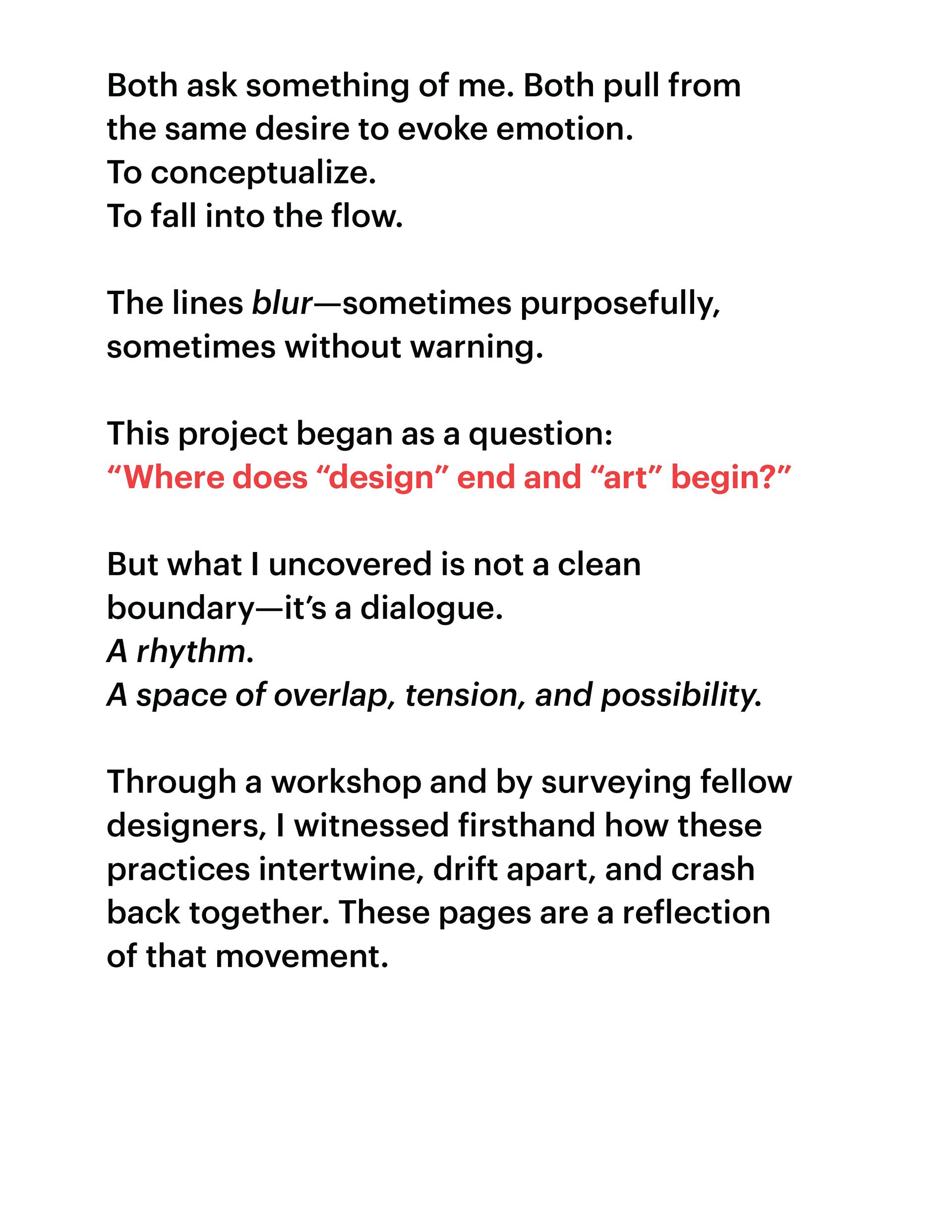 I’m a designer and artist interested in the overlap of aesthetics and function—how storytelling, style, and user experience come together to shape how people see and interact with the world around them! At my core, I love creating meaningful visual experiences that combine clarity and emotion. I’m always exploring new ways to communicate ideas through thoughtful and well-crafted design.